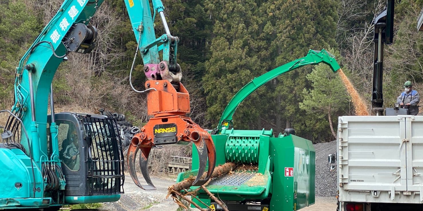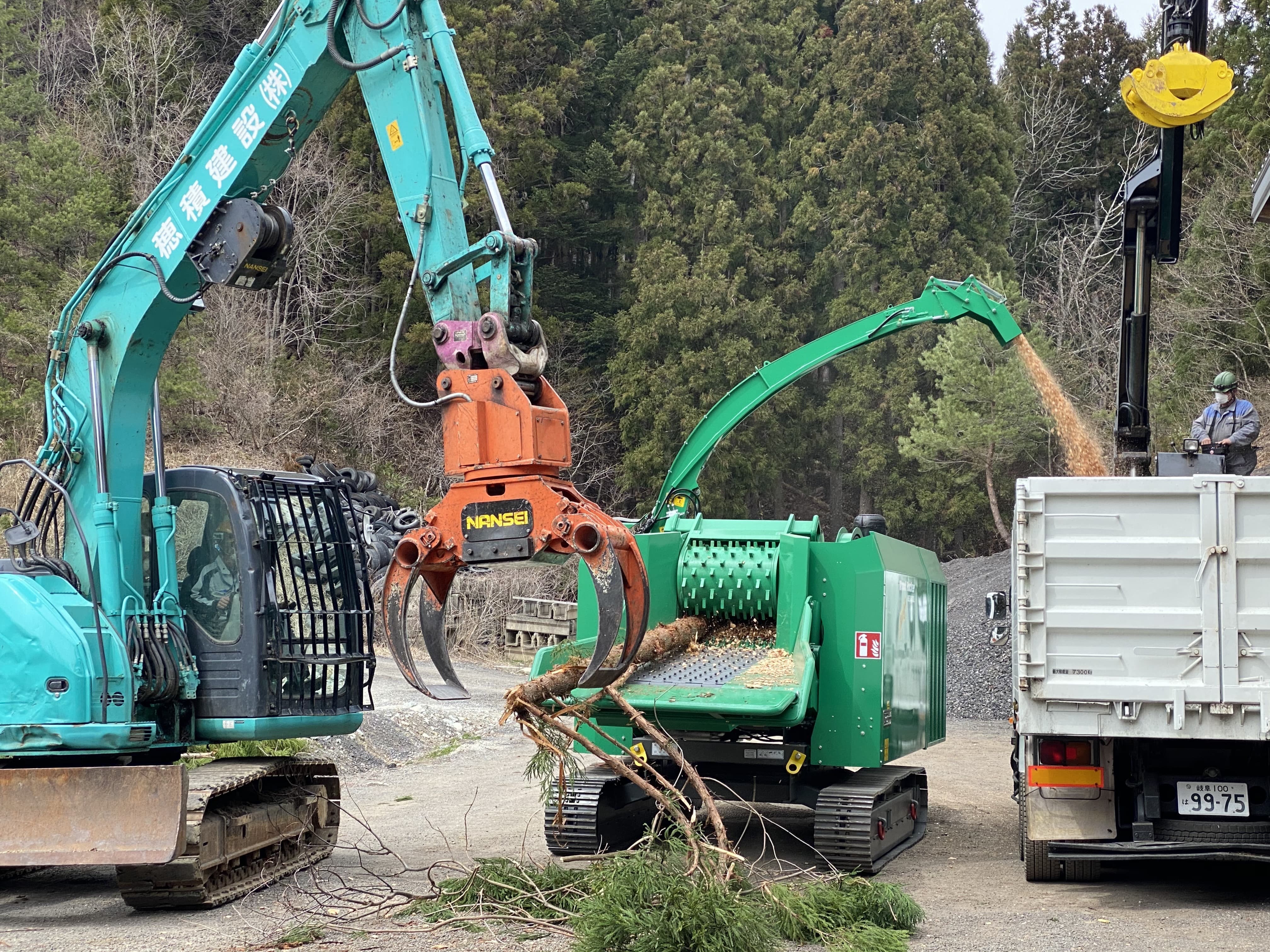 従来は山林に放置されていた間伐材や林地残材など買取り、木質バイオマス発電用の燃料(木質チップ)に加工・販売しております。